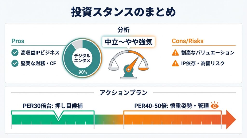 「高収益IPビジネス+堅実な財務・CF」という質の高さは評価できるが、株価にはかなりの期待が織り込まれている」
