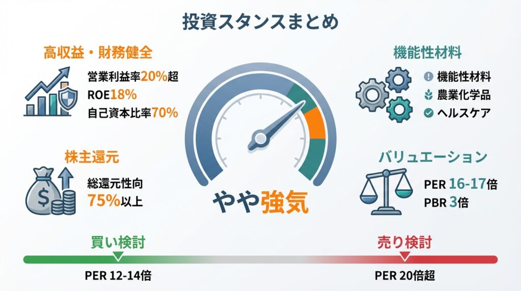 どれか一つが不調でも、残りが下支えしやすいポートフォリオ。 - 一方で、半導体・農薬・医薬というボラティリティの高い市場に依存しており、短期の業績振れは覚悟が必要。