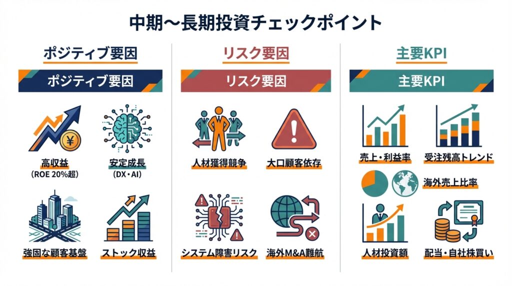 • 安定成長:DX・AI投資の追い風、共同利用システム・BPOによるストック収益