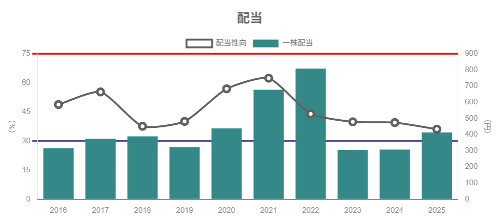 - 利益成長に応じて配当も増加しており、還元姿勢は良好。ただし配当利回りは低く、