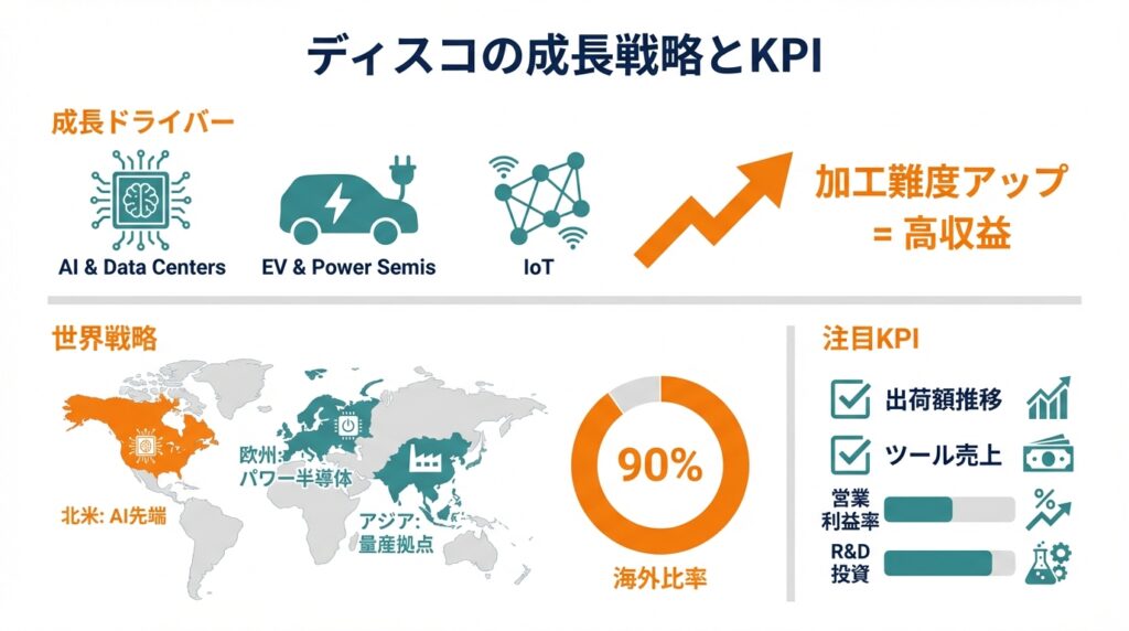 これらはいずれも「加工難度が上がるほどディスコの付加価値が高まりやすい」領域であり、単なる数量増だけでなく、単価・粗利率にもプラスに働く可能性があります。