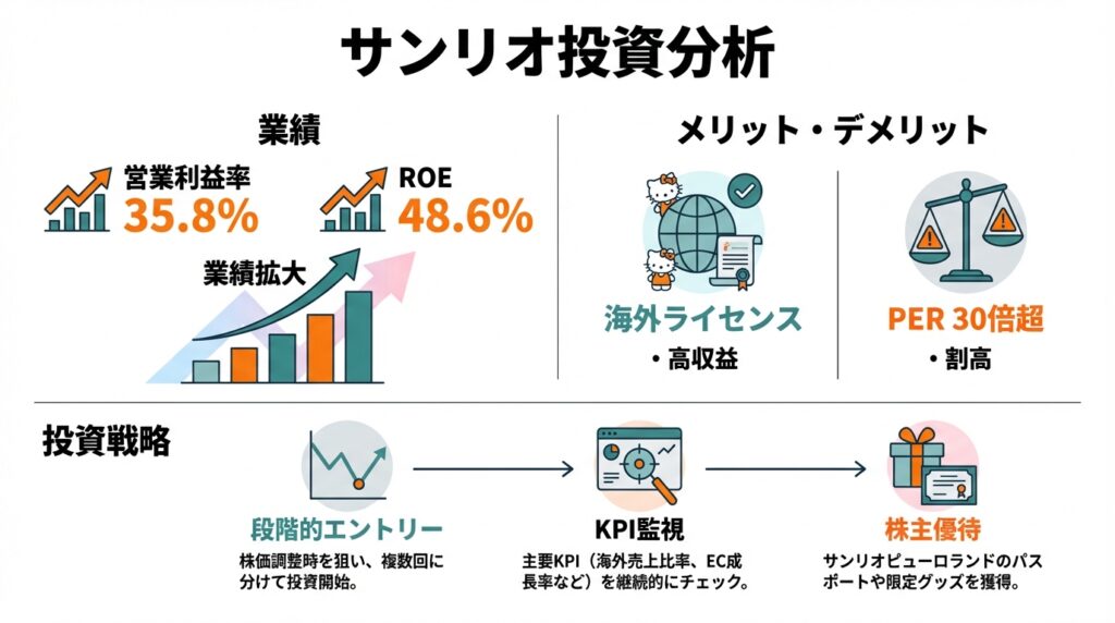 サンリオに中長期で乗るかどうかは、「このプレミアムバリュエーションを、今後のIP成長でどこまで正当化できると見るか」という、ストーリーの強さにかかっています。