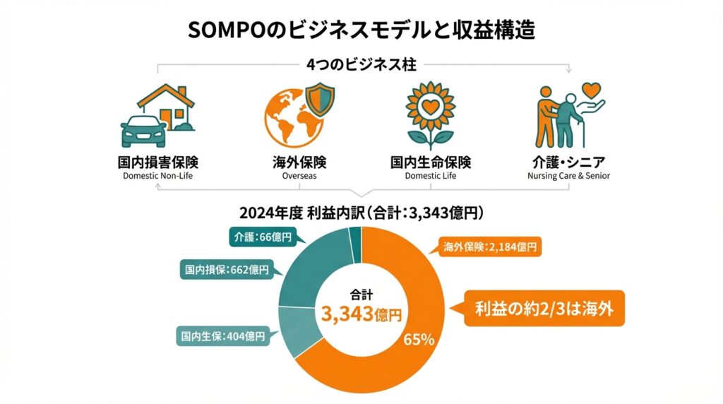 SOMPOは持株会社で、主な事業は以下の4本柱です。