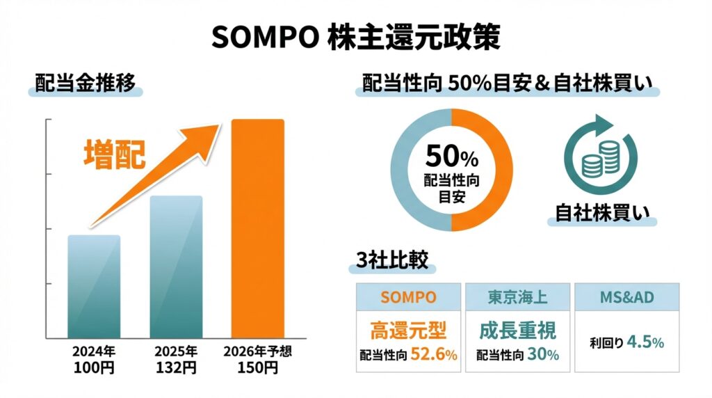 中長期投資家の目線では、SOMPOは「PBR1倍割れ+増配&自社株買い」を期待できるリレーティング候補と捉えることも可能です。