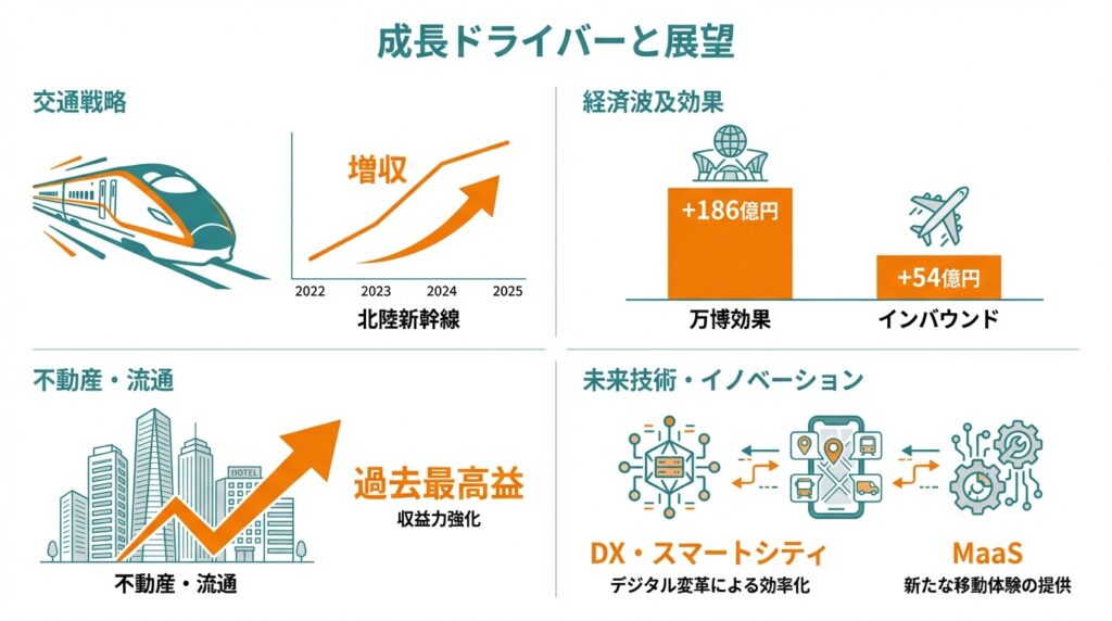 • 鉄道需要・インバウンド回復+大阪・関西万博・北陸新幹線延伸を追い風に、モビリティ・不動産・流通が順調に伸長