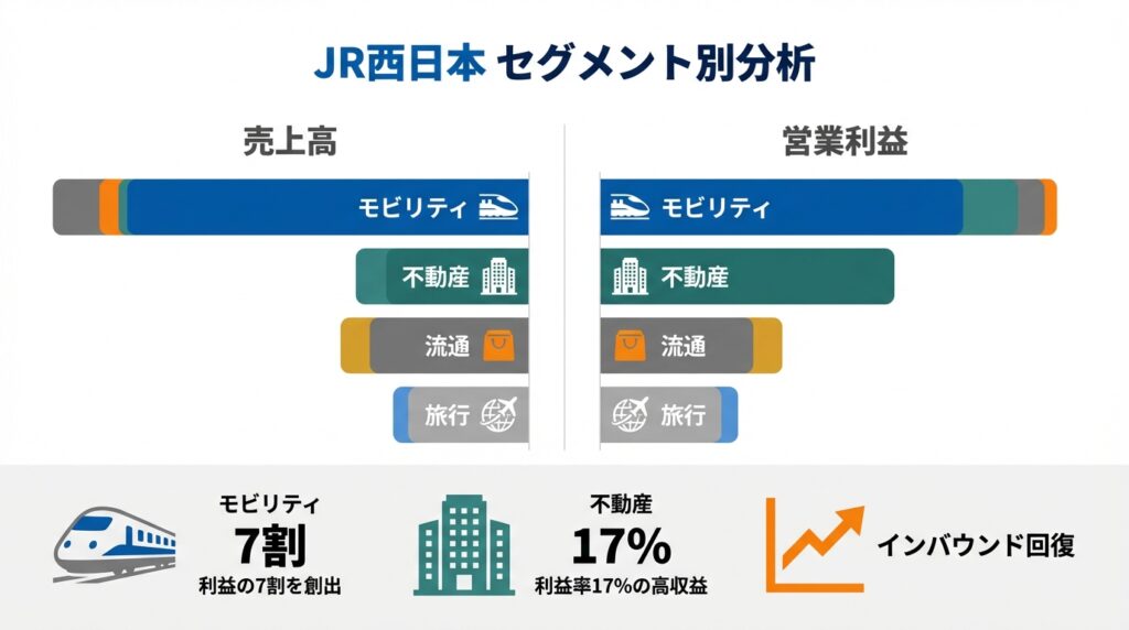 • モビリティがベースを稼ぎ、不動産・流通が高マージンで利益を押し上げる構造