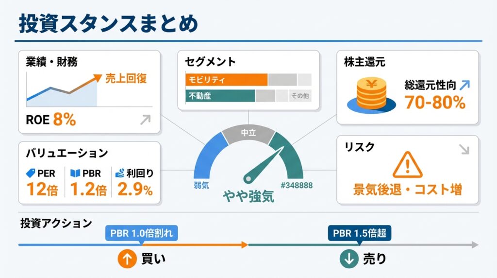 「やや強気寄りの中立」〜「やや強気」 のスタンスを取りうる銘柄と考えられます(詳細は第10章で整理)。