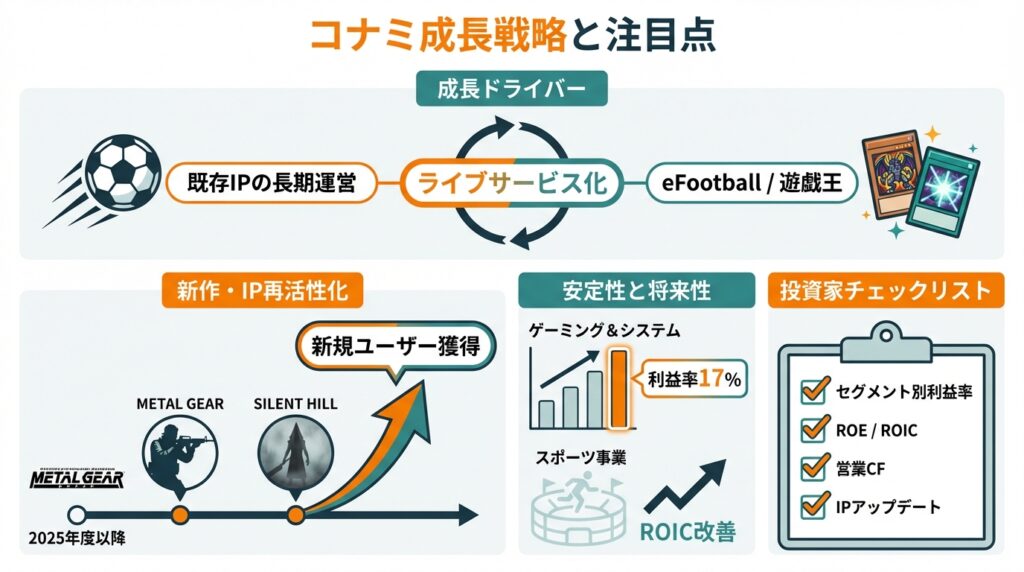 コナミの成長ドライバーは、何より既存IPの長期運営力です。