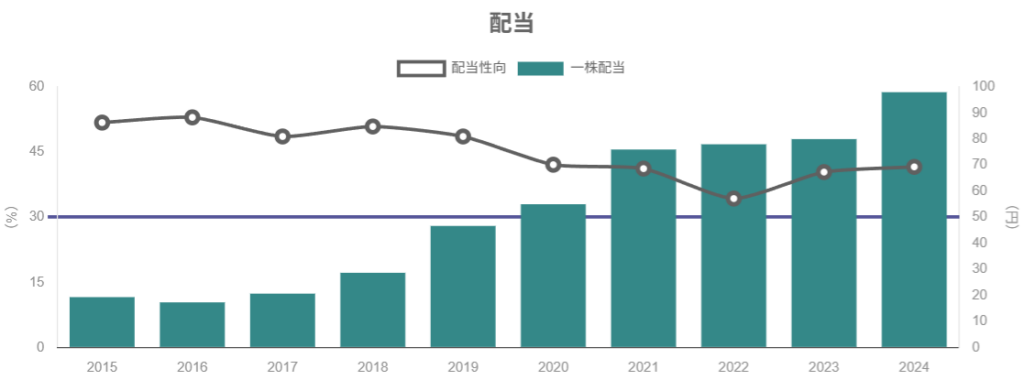 高ROE企業でありながら自社株買いに依存せず、研究開発投資と配当のバランスを取っている点は、長期で価値創造を目指す経営姿勢として評価できます。一方で、「積極的な株主還元(自社株買い)を好む投資家」にとってはやや物足りない可能性もあります。