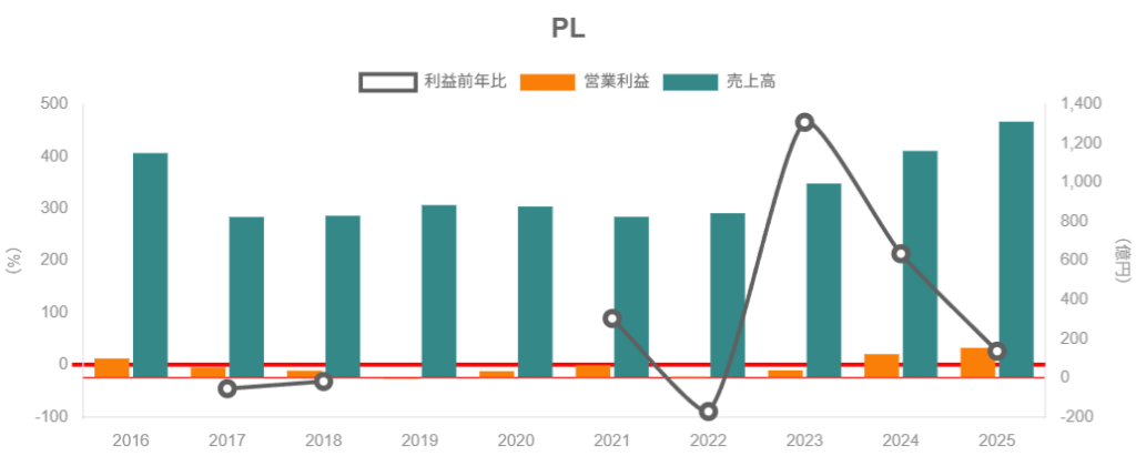 - 2023〜2025年にかけて売上・利益ともに大幅成長