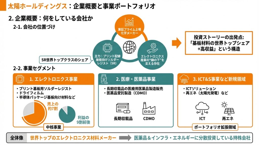 この「基板材料の世界トップシェア+高収益」という構造が、太陽HDの投資ストーリーの出発点になります。
