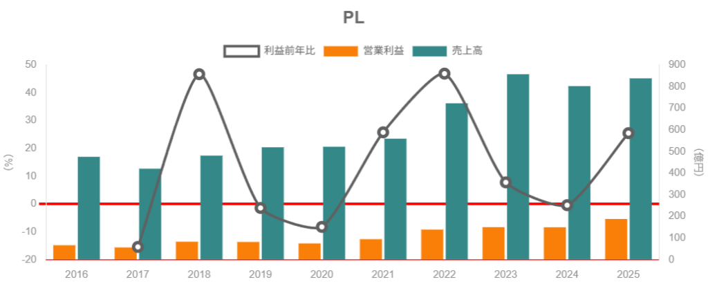 • 2025年:売上はコロナ後のピークに迫る水準まで回復しつつ、営業利益率が22%台へ大きく改善。