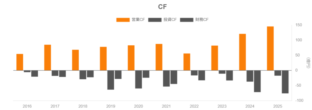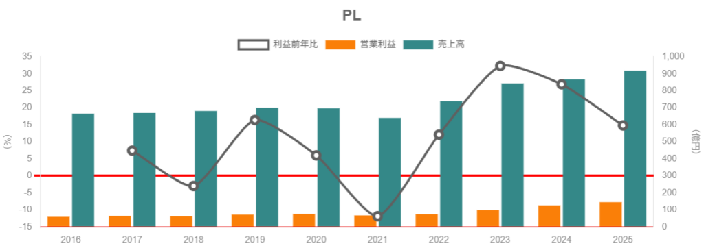 2021年3月期〜2025年3月期(以下、便宜上 FY2020〜FY2024)の5年間で、売上・利益ともに過去最高を更新し続けている成長局面の企業です。