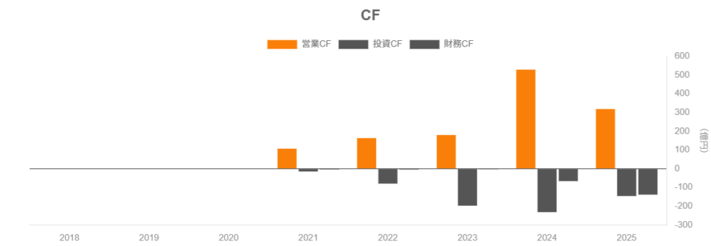 - PSR約6.5倍・PBR約6.8倍・PER40倍超と、成長期待を強く織り込んだ水準