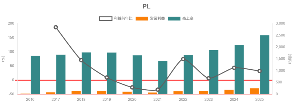 - 売上・営業利益とも2021年以降は右肩上がり