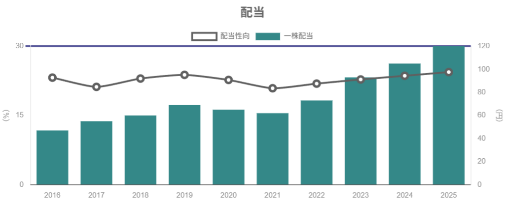 - 配当は5年で約2倍、2026年3月期も増配予想かつ配当性向2〜3割台と余力があり、配当+自社株買いによる総還元志向が強い。