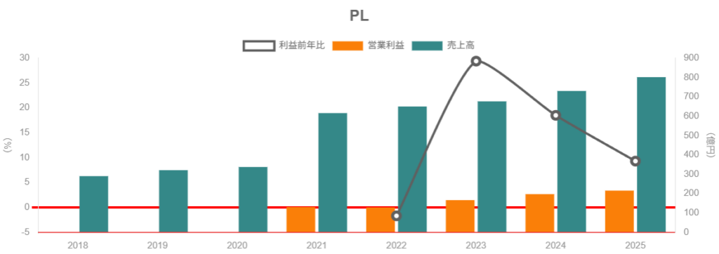 年平均成長率(2022→2025)は約7%強と、安定成長と言えるペースです。