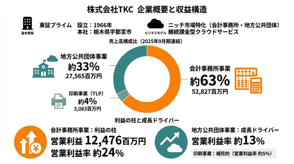 結論として、TKCは「会計事務所事業が利益の柱」「地方公共団体事業が成長ドライバー」「印刷は補完的」という構造と整理できます。