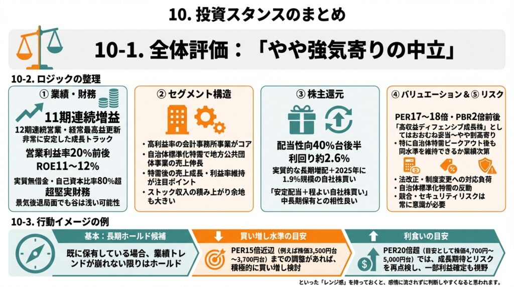 - 会計事務所事業が利益の柱、自治体標準化・ガバメントクラウドが成長ドライバーだが、特需後の反動リスクには注意が必要。