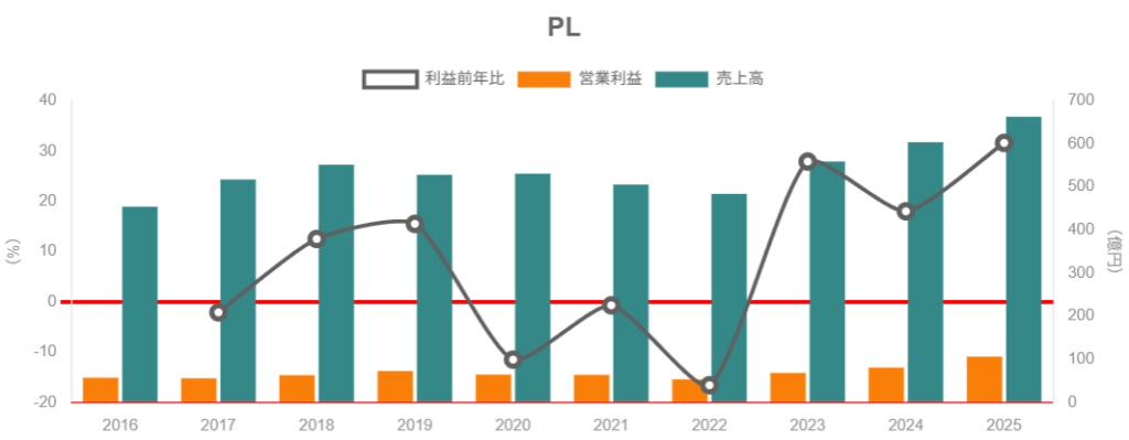- 2025/3期:売上 663億円、営業利益 106億円(16.0%)