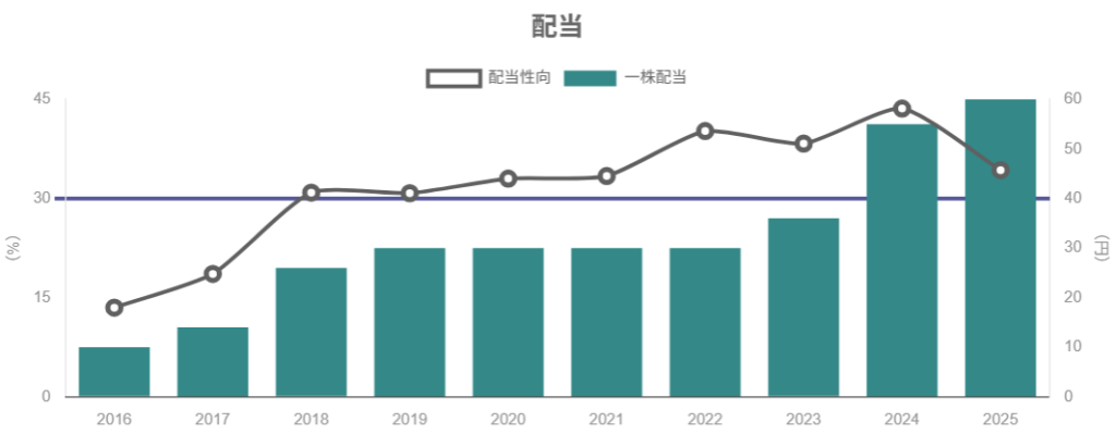 - 配当性向30〜40%+DOE4%目標で、安定配当のコミットメントが明確
