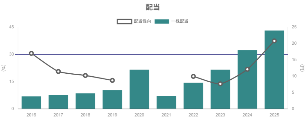 - 配当は段階的増配+配当性向30%程度。
