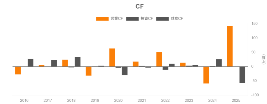 - 2024年9月期に見られたように、在庫積み上げ局面では営業CFが大きくマイナスになることがあります。