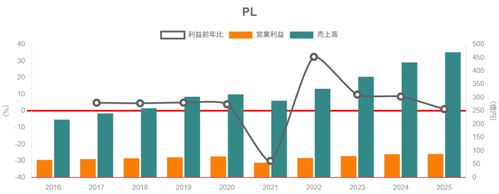 • 営業利益率:2025年2月期で18.7%(同業他社は概ね5〜7%台)