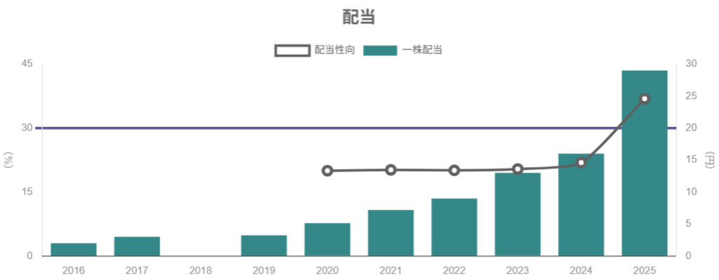 - 配当は毎期増配+配当性向30%前後まで引き上げ