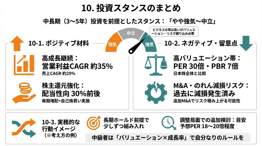 (ビジネスの質は非常に高いが、バリュエーションとM&Aリスクを織り込む必要あり)