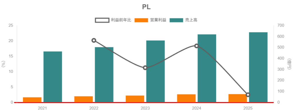 - 2020〜2025年で売上・利益・営業利益率は順調に改善し、ROEも15%超と高水準