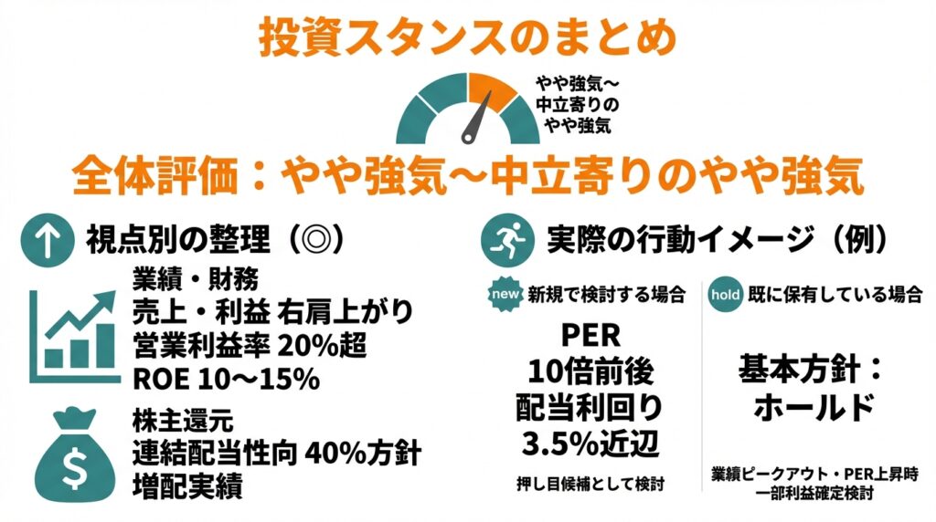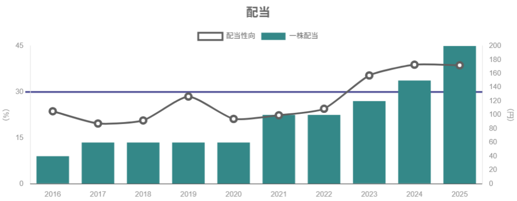 → 「安定成長+増配期待」の中長期インカム銘柄として魅力的。