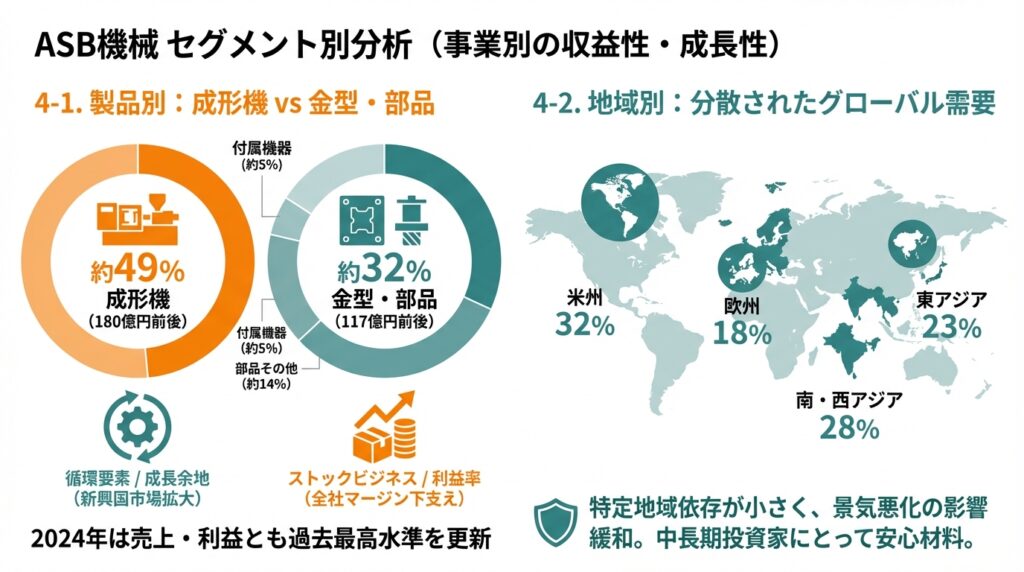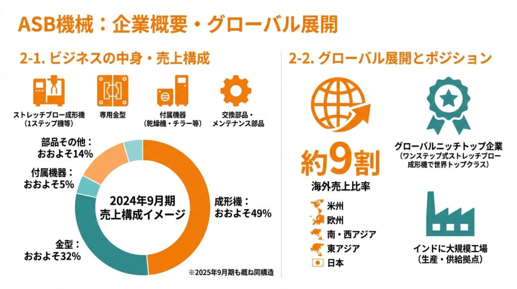 となっており、2025年9月期も「成形機約半分、金型3割強、部品その他1〜2割」という構造は概ね変わっていません。