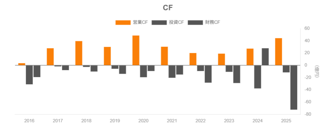 - 直近のPERは20倍台前半、PBRは2〜3倍程度と、成長期待をある程度織り込んだ水準