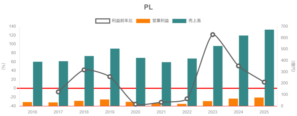 - 2021〜2025/3期で売上約1.7倍、営業利益約2.9倍、営業利益率11%台に改善