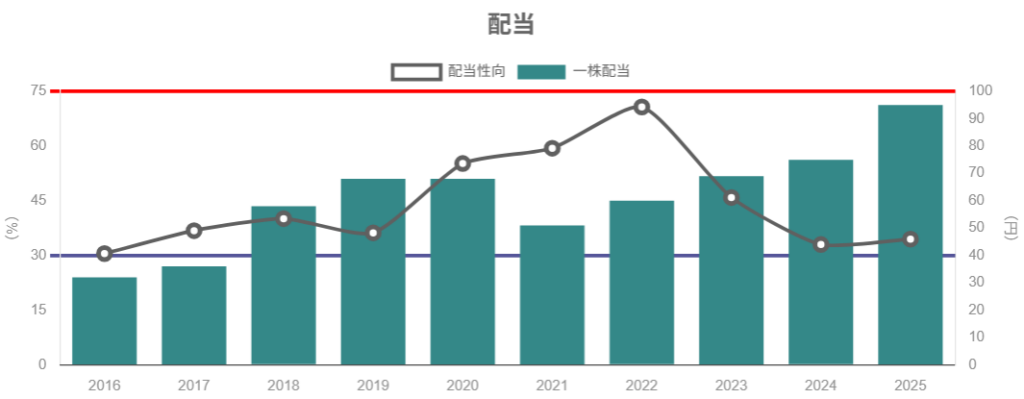 - 上場以来無配なし、連続増配傾向