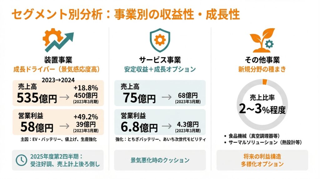 - 装置事業が成長ドライバー、サービス事業が安定収益のクッション