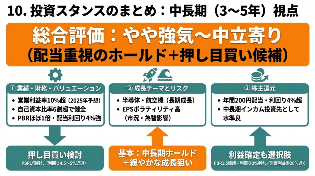「やや強気〜中立寄り(配当重視のホールド+押し目買い候補)」