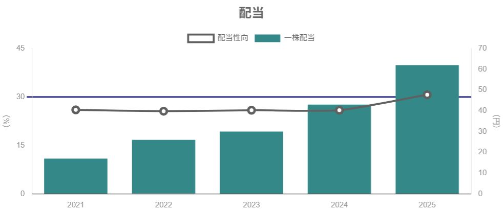 • 配当性向40%+自社株買い方針という、国内成長株としてはトップクラスに株主志向が強い。