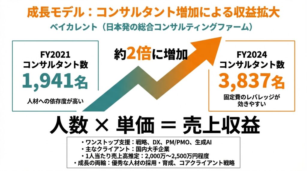 人材への依存度が極めて高い一方で、スケールすればするほど「固定費のレバレッジ」が効きやすいビジネスでもあります。