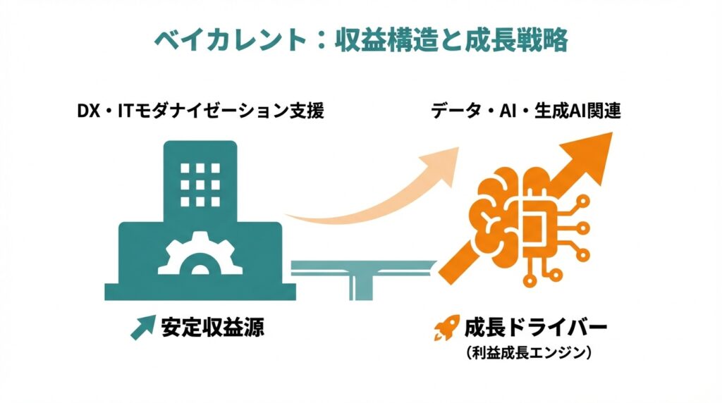 • 現状の利益構造は、DX/ITモダナイゼーションが安定収益源、AI・新領域が成長ドライバーという構図。