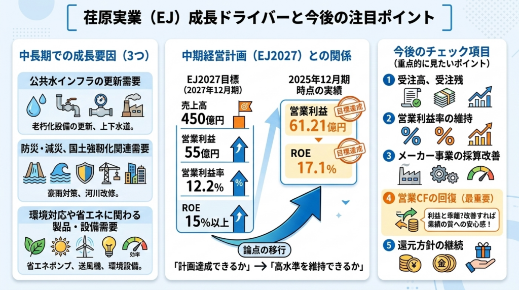 - EJ2027の営業利益目標55億円を前倒しで上回っており、今後は成長余地よりも維持力の検証が大事です。